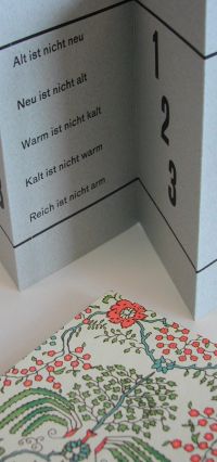 Size approx. 10x16 cm, stretching out to some 70 cm lang, 12 pages, 6 letterpress printed. Edition of 30.