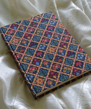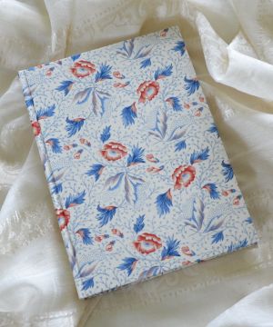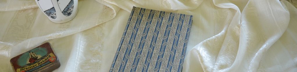 144 pages from paper Velata 18 spacing strips Endpaper smokey blue Ribbon page marker bordeaux
