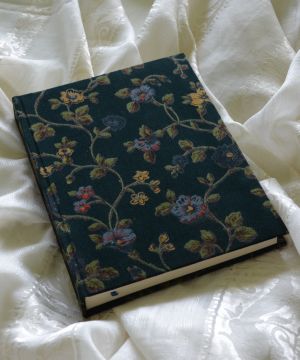 144 pages from paper Velata 18 spacing strips Endpaper dark green Ribbon page marker blue