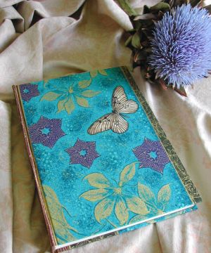 144 pages from paper Velata 18 spacing strips Endpaper smoky blue Ribbon page marker dark green