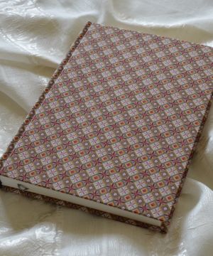 144 pages from paper Sympathicus (yellowish and rough) 18 spacing strips Endpaper beige Ribbon page marker grey