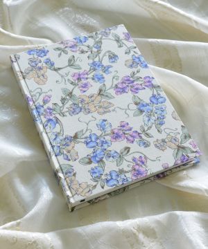 144 pages from paper White& Even 18 spacing strips Endpaper mauve Ribbon page marker violet