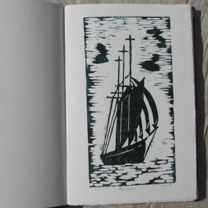 There are 144 pages in every book. A woodcut is printed directly from the block onto the third page. Matching the woodcut a fabric is chosen for the cover.