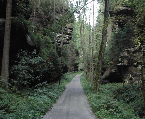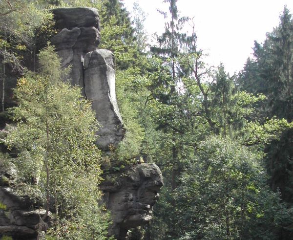 This is the entry of what is called "Der Grosse Zschand" one of many impressive rocks in Saxonia's Elbsandsteingebirge. Just a few steps to the right you will find a wooden cabin with a sign saying "Technisches Denkmal" (Technical Monument). For some 600 years - until 1955 - here a sawmill has been run.
