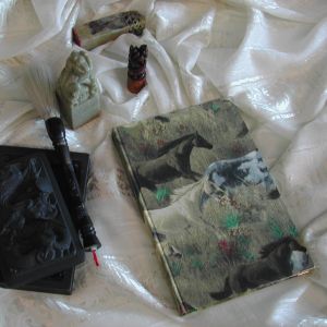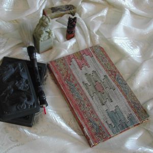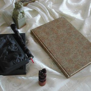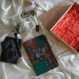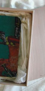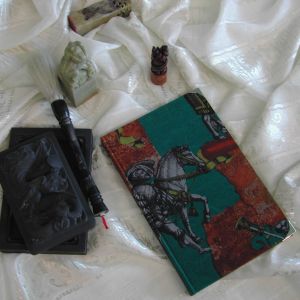 Covers have been made from Viscose fabric with a knight-pattern. Every book comes in a wooden box.