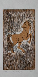 The woodcut has been printed from two plates, it is signed. Every book is fitted with a ribbon page marker, 4 metal book corners and decorated endpapers have been specifically made. The edition is limited to 28 numbered copies.