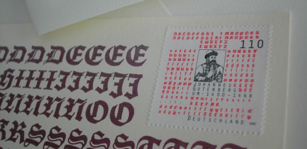 The official stamp of German Mail was out in the year 2000 for Johannes Gutenberg's birthday.