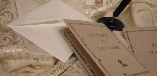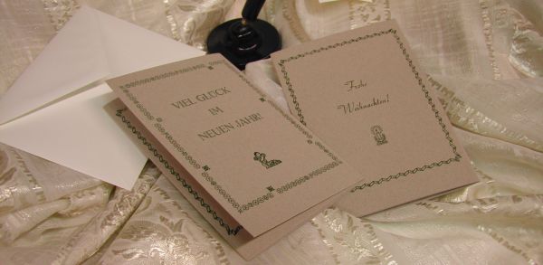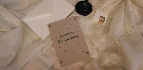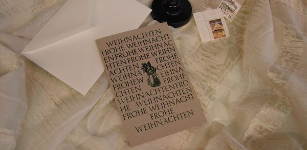 Simply a classic: the engraved black letter characters chosen for season's greetings. 4-pages-card. With envelope size 12x18 cm.