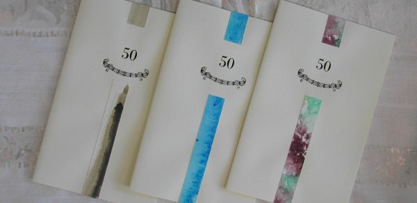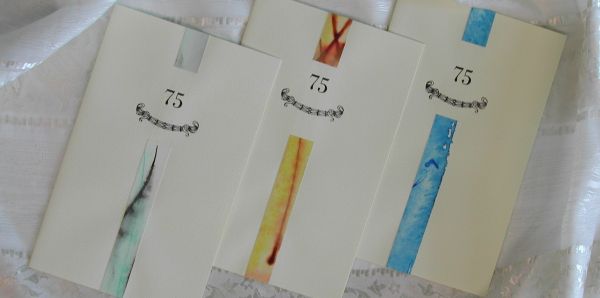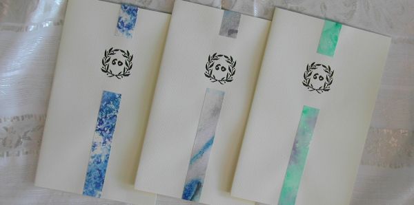 Letterpress with stripes of handmade decorated paper. Each card is unique. 4 pages card with envelope size 12x18 cm.