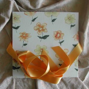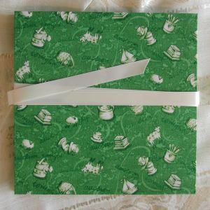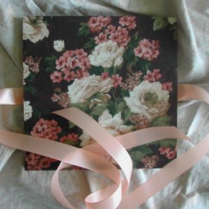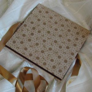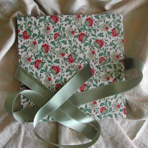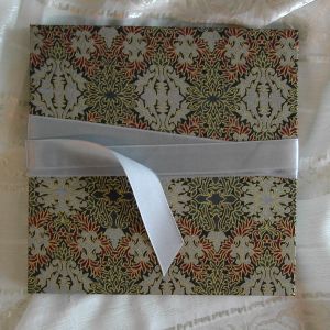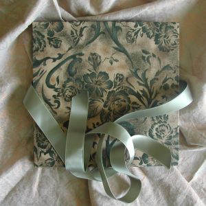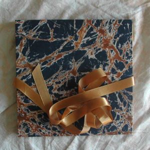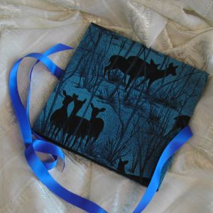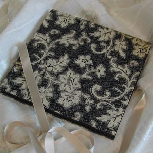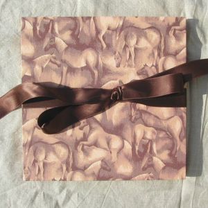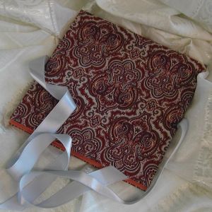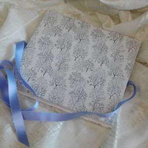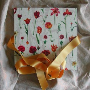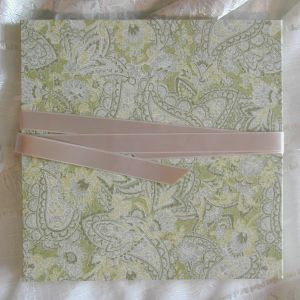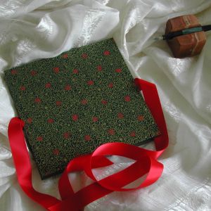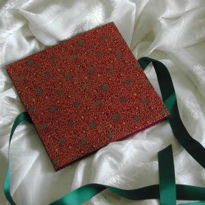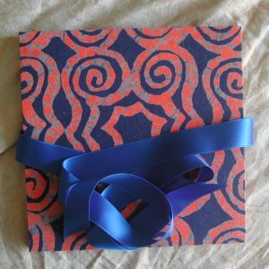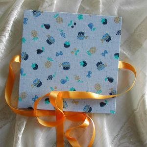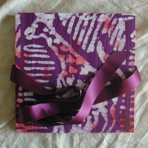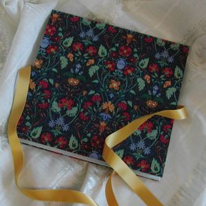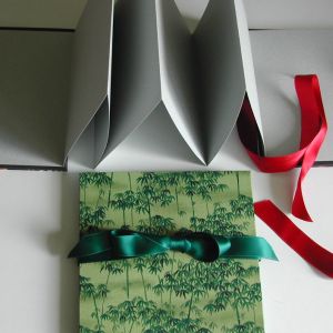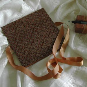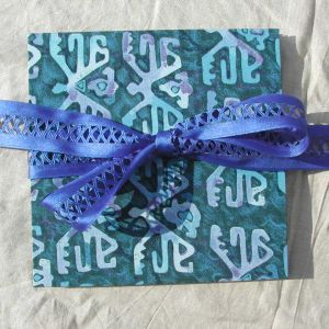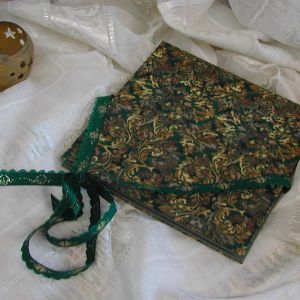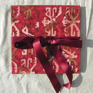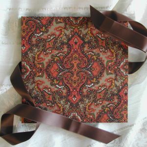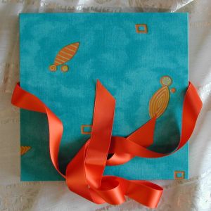A wide variety of fabrics is being used for these books: african batik, elegant corduroy, classic Paisley, and many more. Each of these bandoneon books is unique in its combination of fabric, ribbon and papers inside and is signed by the artist. All 20 pages can be designed freely. Size 21x21 cm.