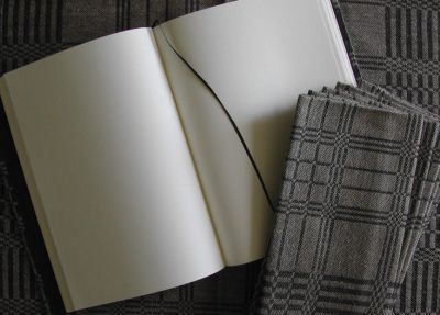 Linen traditionally used for kitchen towels or table cloths does make wonderful visitors' or recipe books. Plus it will be a lovely set having a towel or table cloth made from the same fabric as the book cover.