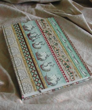 The books are handsewn, the covers made from strong bookbinders cardboard and good fabric. Size approx. 18x25 cm.